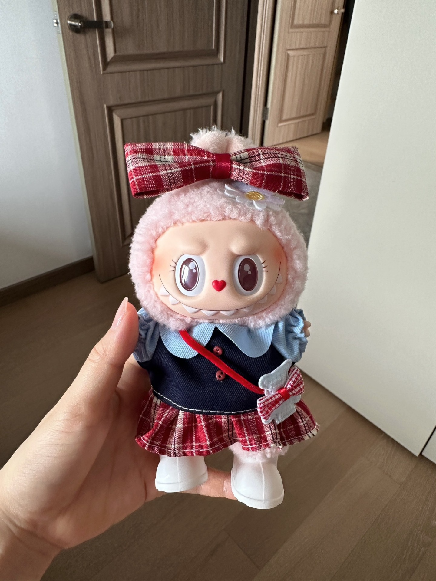 Charming British College Labubu Doll Outfit – 4-Piece Set with Bow, Top, Skirt & Bear Bag