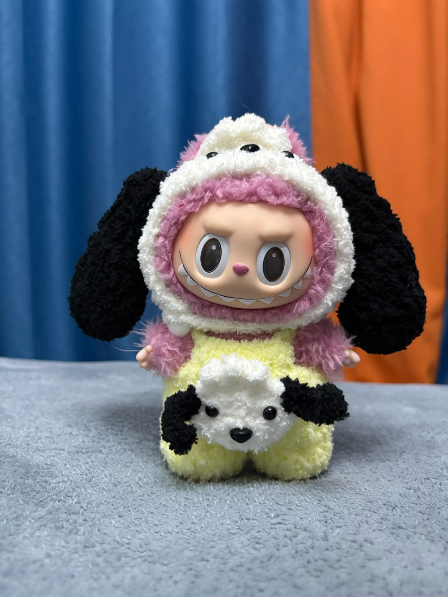 Custom Labubu Plush Outfit with Adorable Dog Design – Handmade, Pastel Colors, & Adjustable Fit