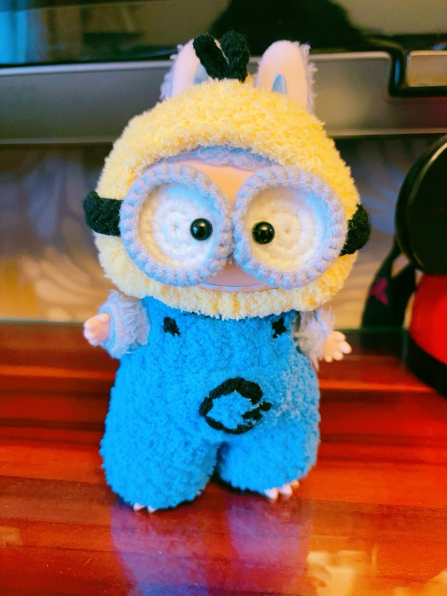 Handmade LABUBU Doll Outfit – Plush Jumpsuit & Hat, Vibrant Yellow & Blue, Cozy & Customizable