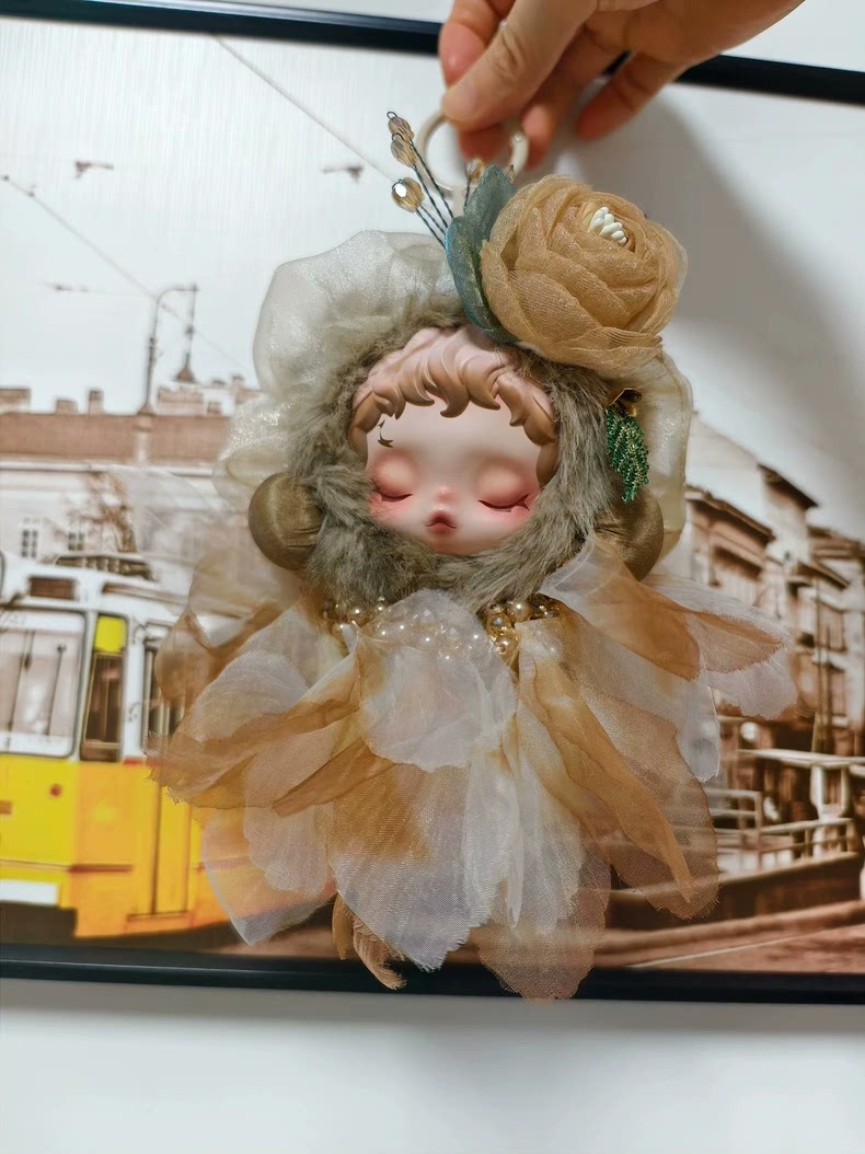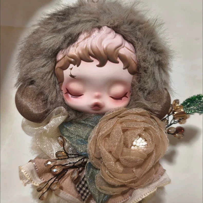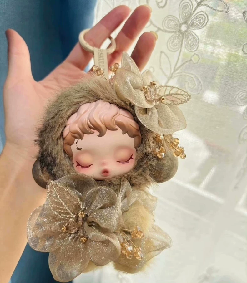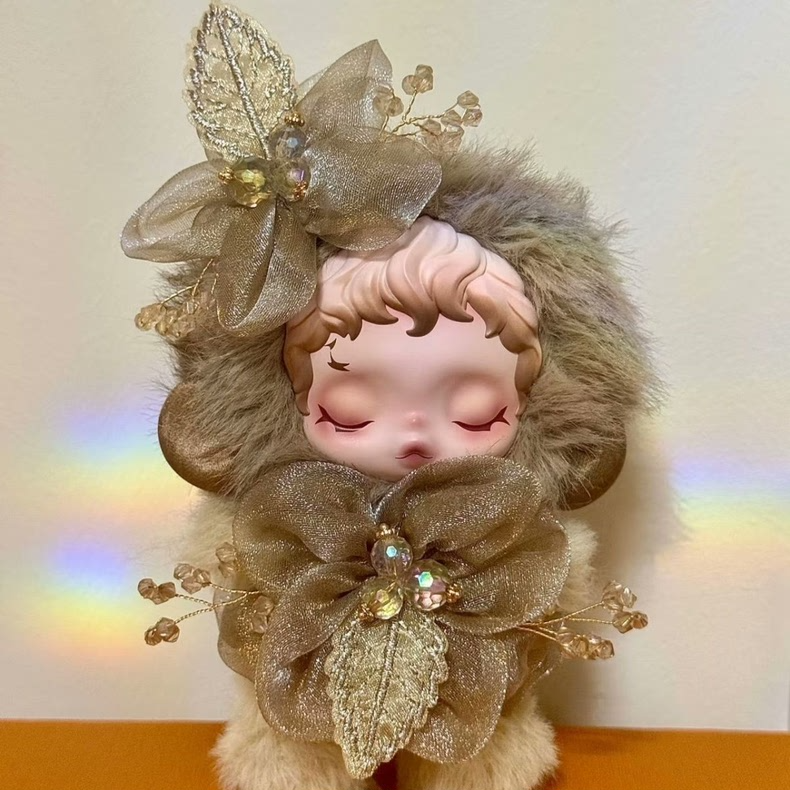 Luxurious Skullpanda Doll Outfit - Plush Floral Embellished Elegance with Metallic Accents for Collectors
