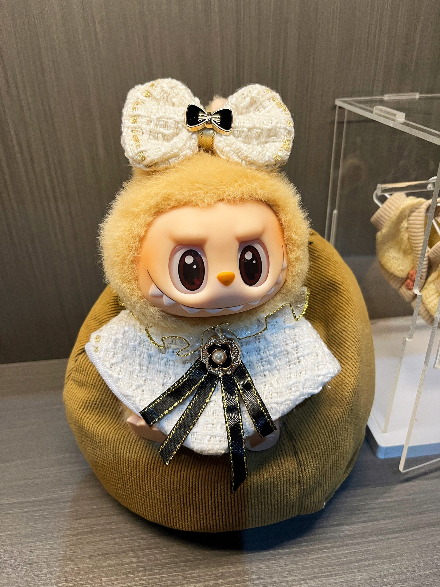 Luxury LABUBU Little Black Dress Outfit – Premium Corduroy & Tweed with Gold Accents