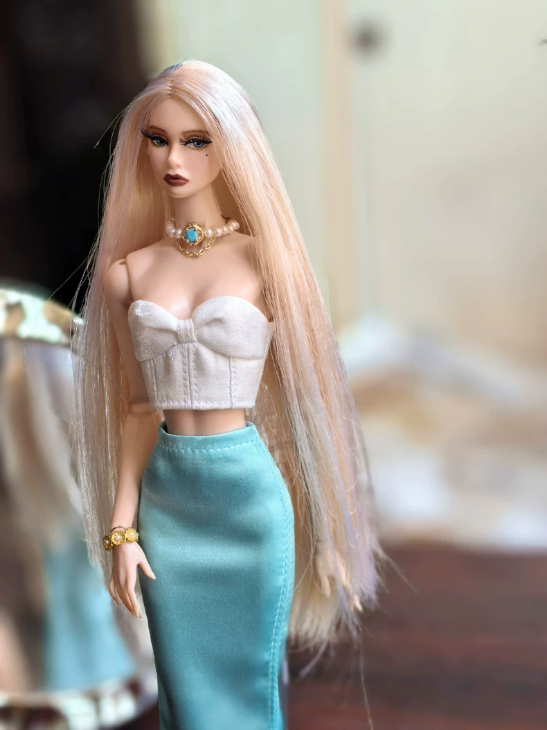 Luxury Mermaid Doll Outfit – Shimmering Fish-Tail Skirt & Pearl Necklace for Barbie & BJD
