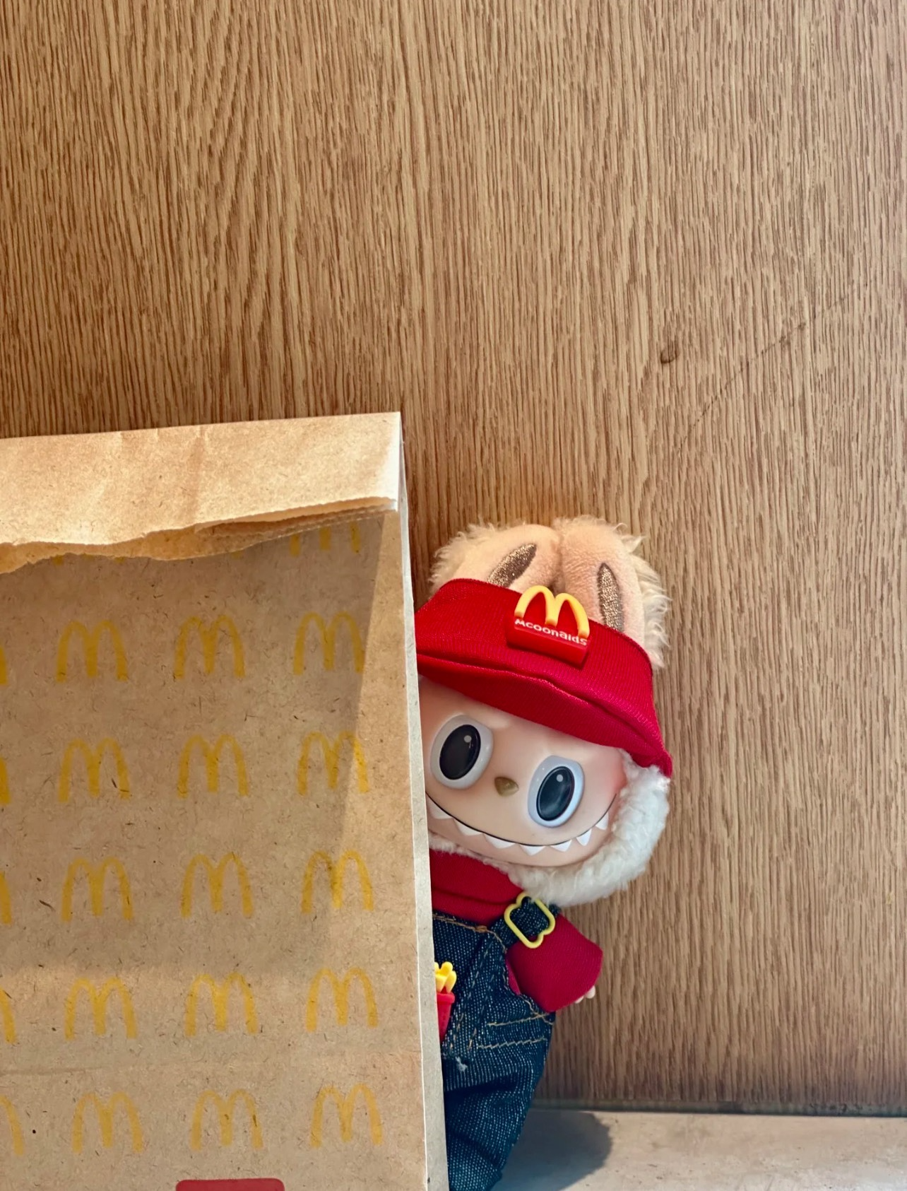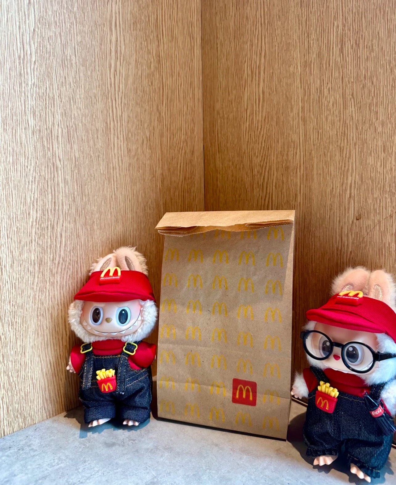 Vibrant McDonald's-Themed LABUBU Doll Outfit – Red Cap, Denim & Accessories for Collectors