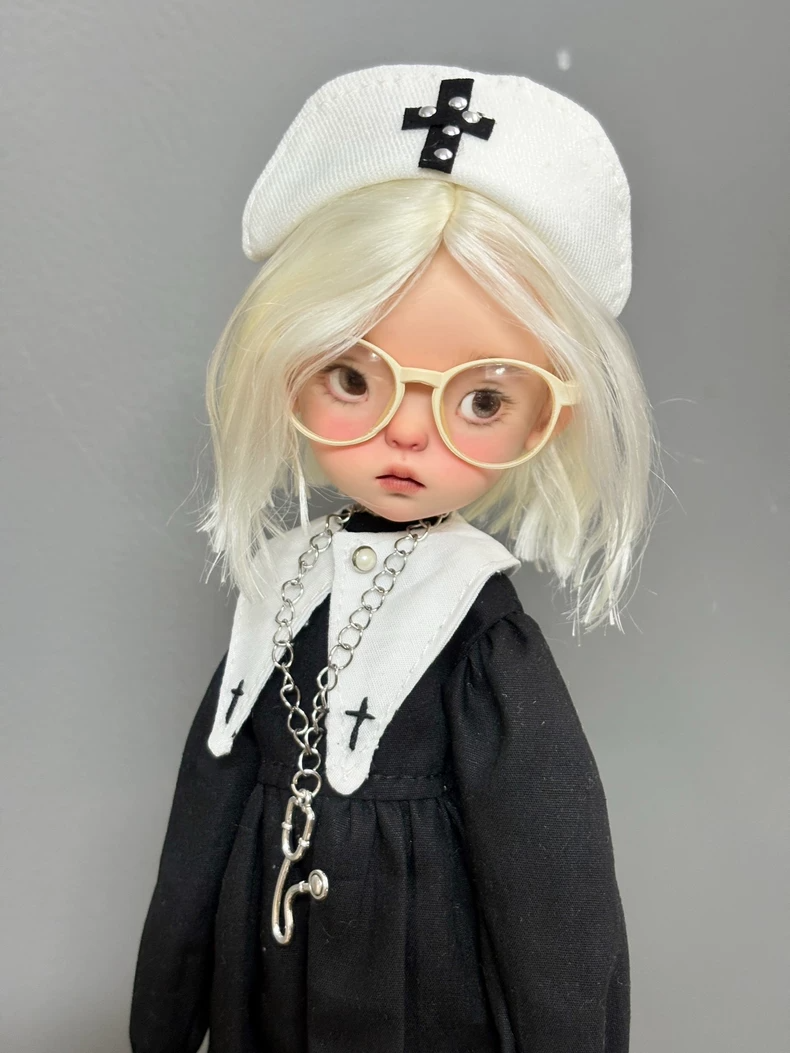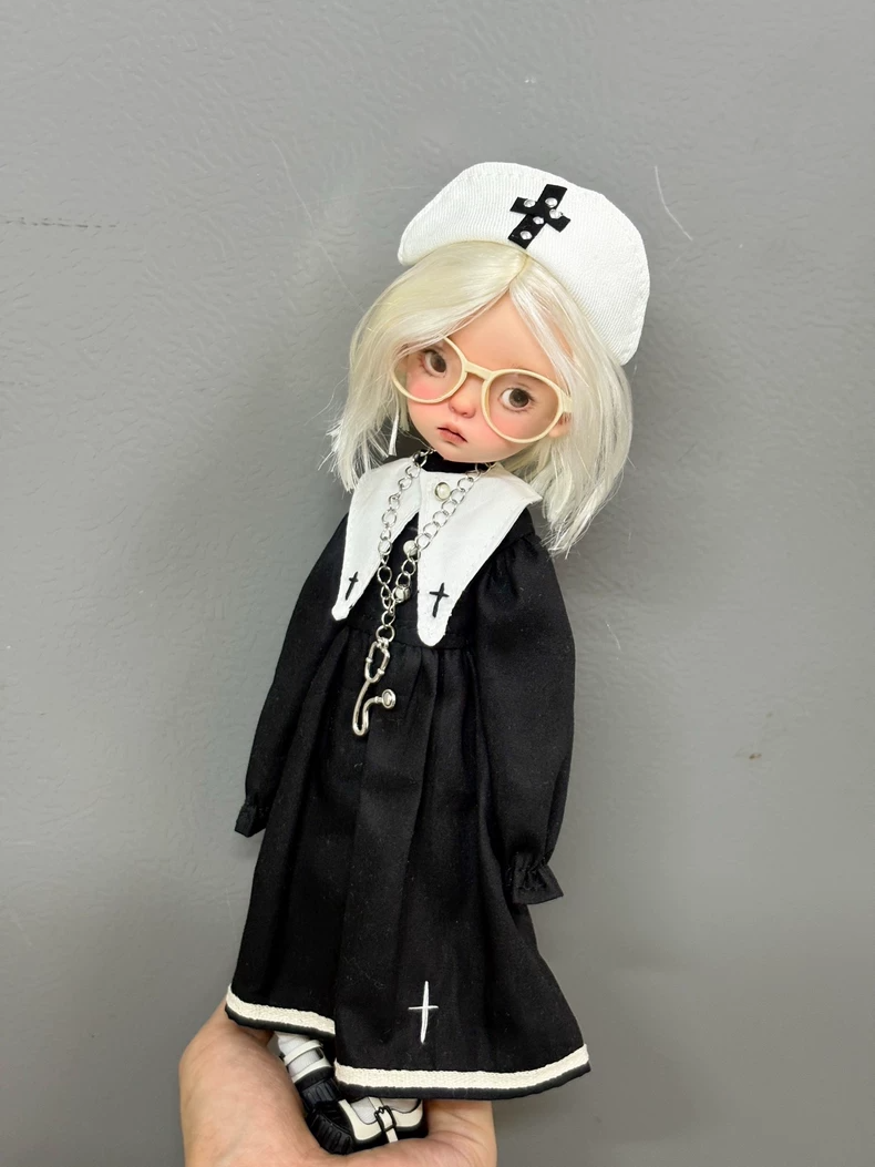 Monochrome Blythe Nurse Outfit with Cross Hat - Durable OB22 OB24 AZONE Doll Costume for Collectors