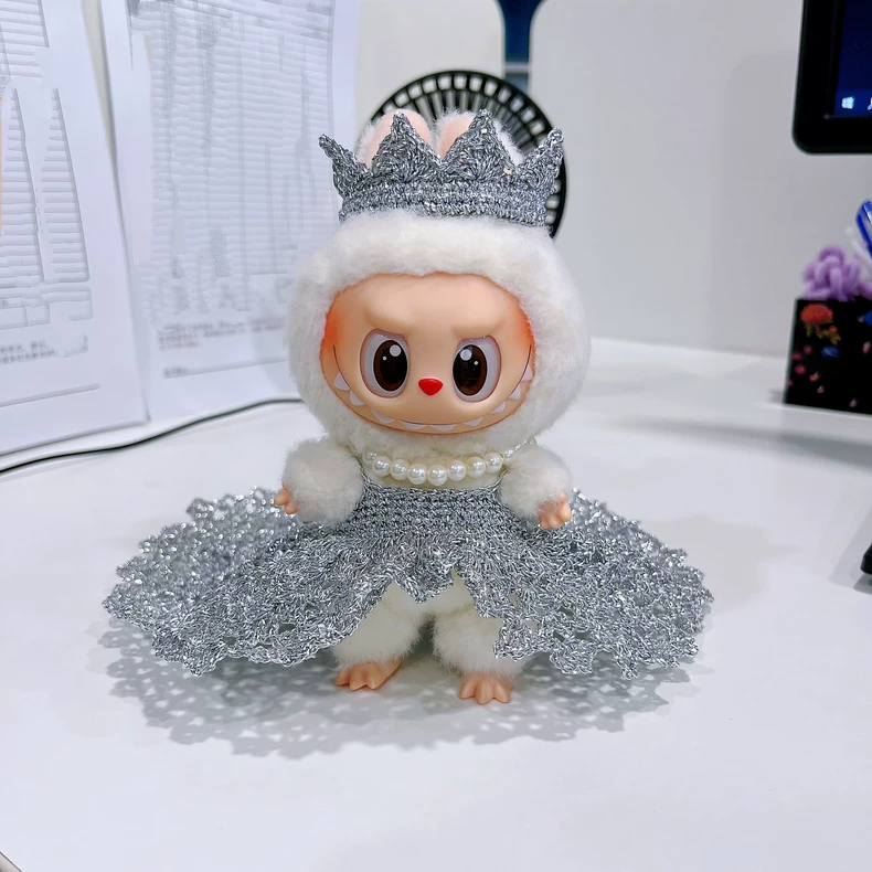 Royal LABUBU Outfit: Elegant Silver Dress & Crown for 17cm Figure – Play & Display!