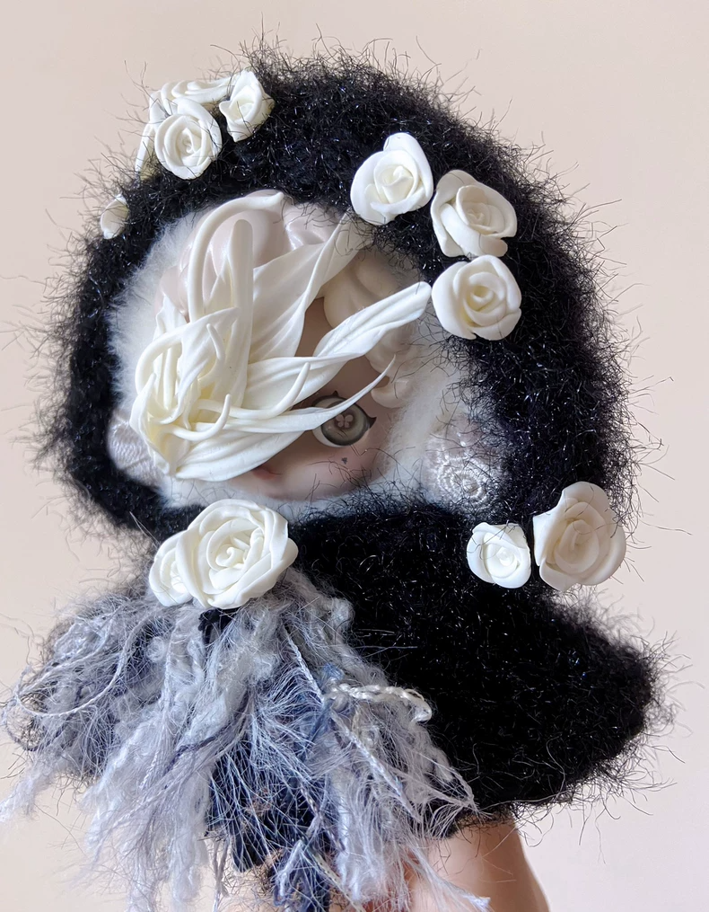 Skullpanda Plush Outfit for Collectible Figures - Elegant Black & White Doll Clothes with Metallic Accents