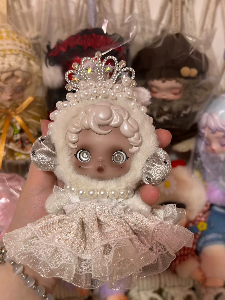 SkullPandy Winter Symphony Outfit – Elegant Lace & Pearl Doll Attire for Collectors