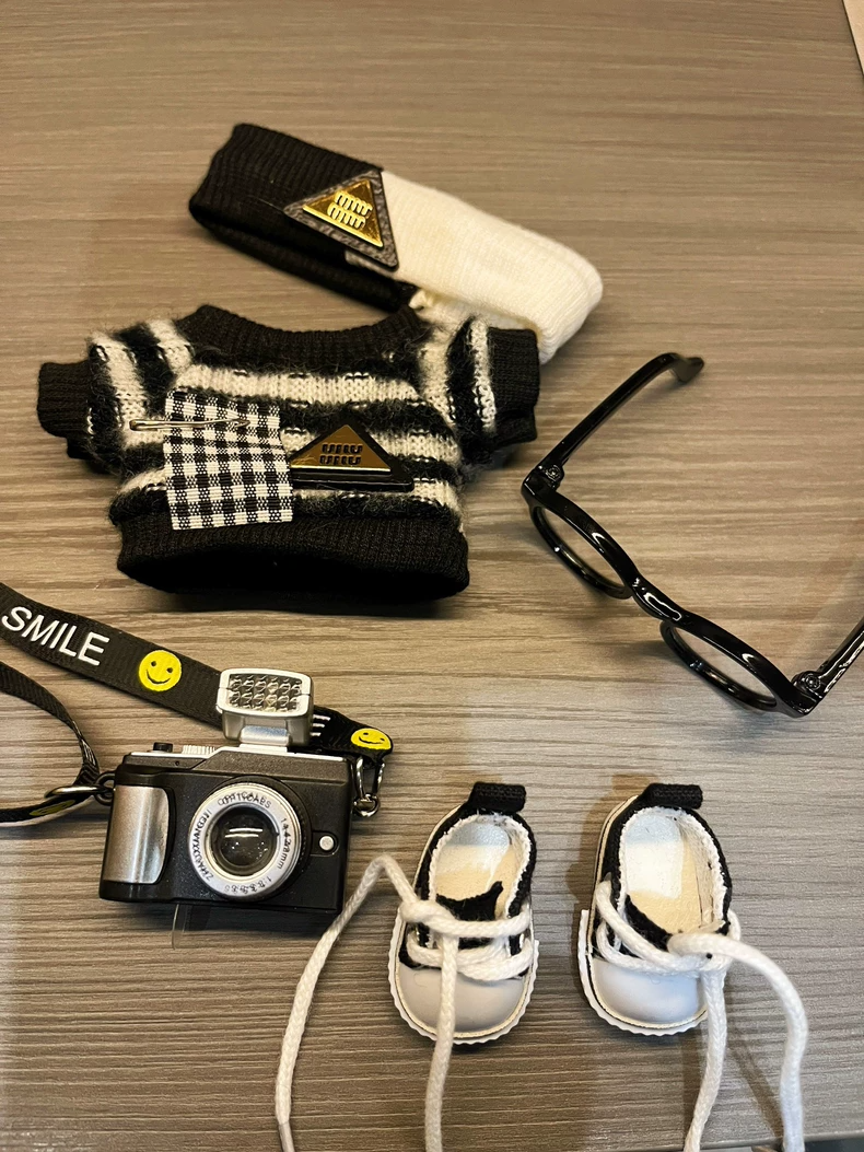 Trendy Labubu Outfit Set: Stylish Camera & Stripes Ensemble for Collectors