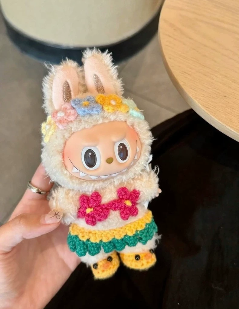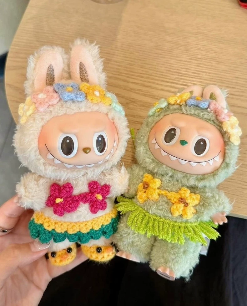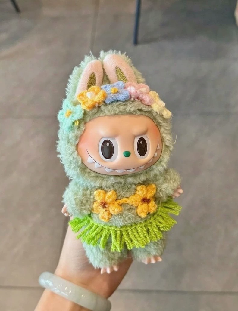Vibrant LABUBU Bikini & Grass Skirt Outfit – Beach-Themed, Handcrafted, Two Color Options, Perfect for Collectors!