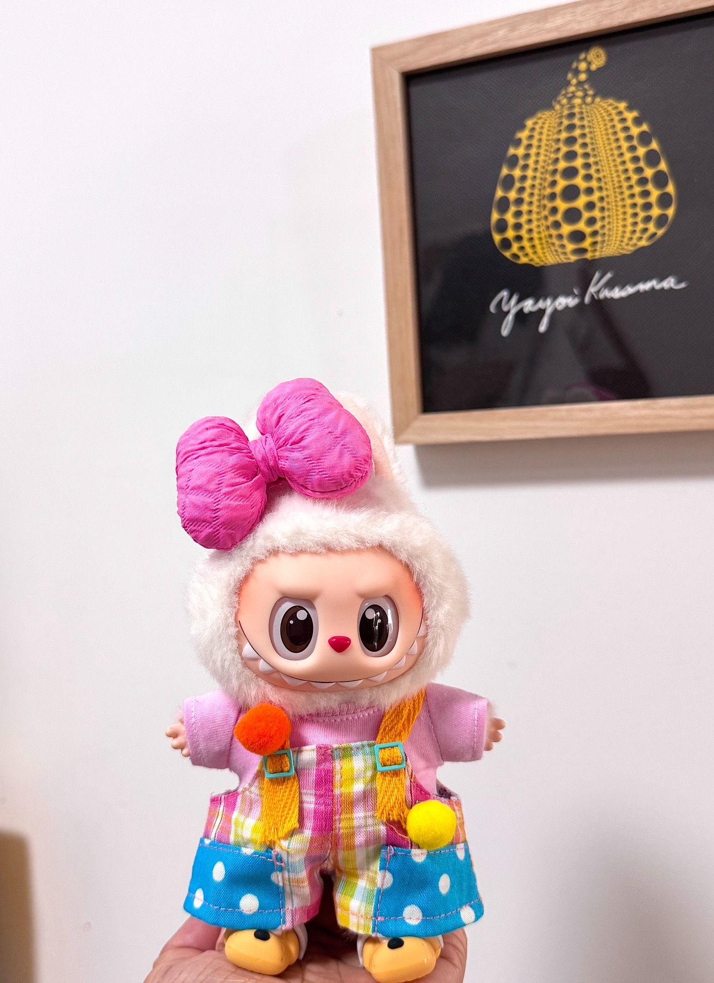 Adorable Pink Labubu Doll Outfit: Vibrant Plaid Overalls & T-Shirt for 17cm Figures