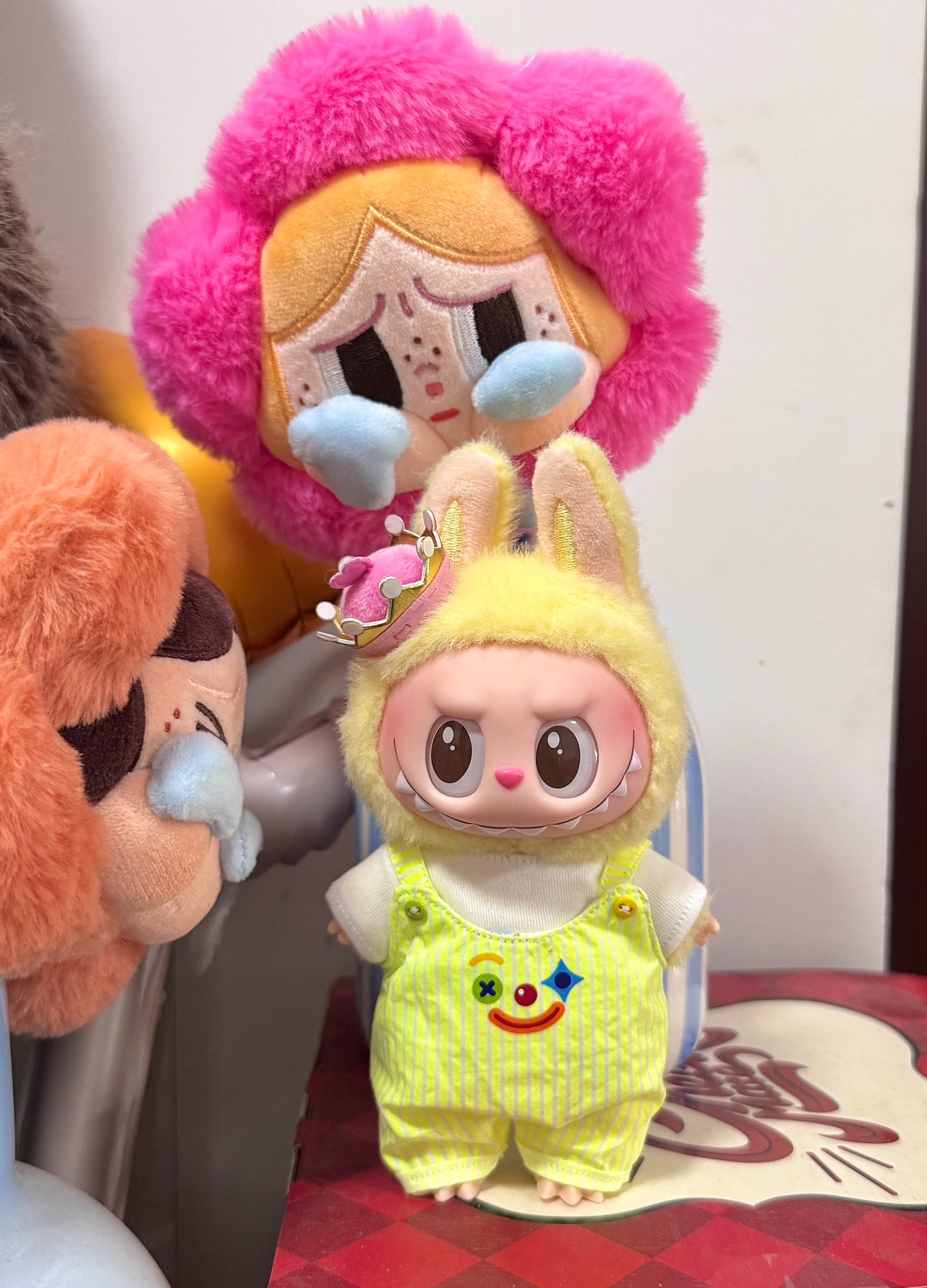 Vibrant Labubu Outfit: Fluorescent Green Overalls & White Tee for 17cm Dolls