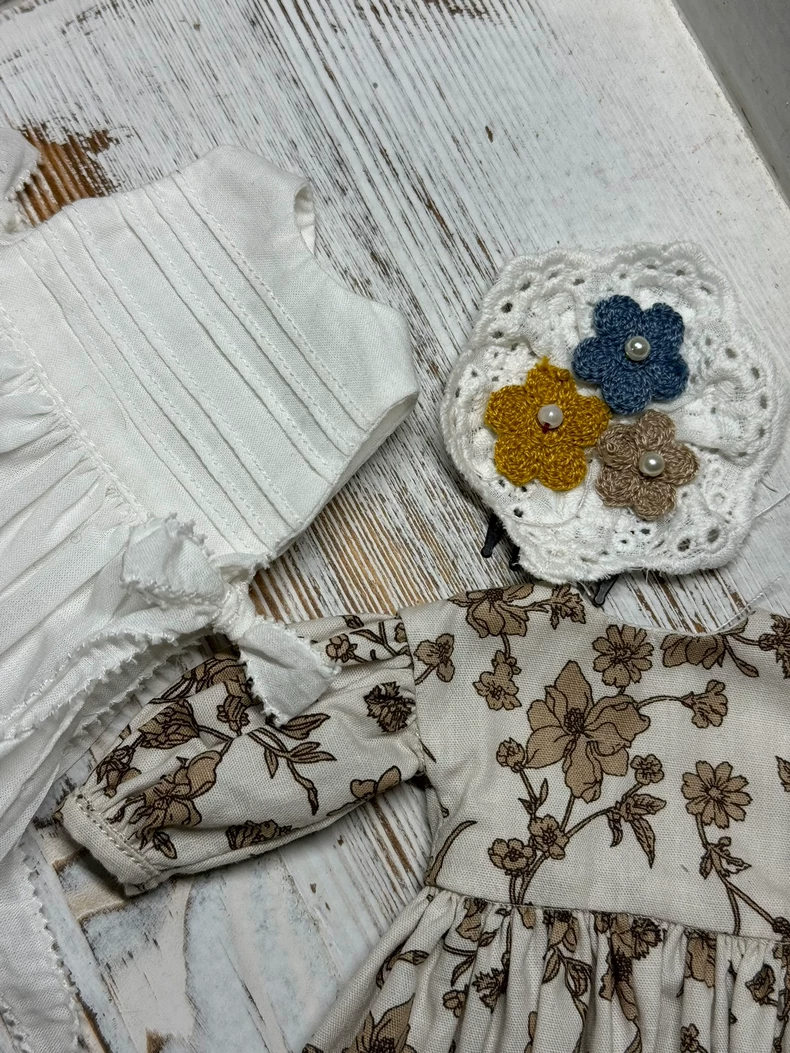 Vintage Floral Blythe Doll Outfit w/ Cape & Lace - Cream & Brown Elegance