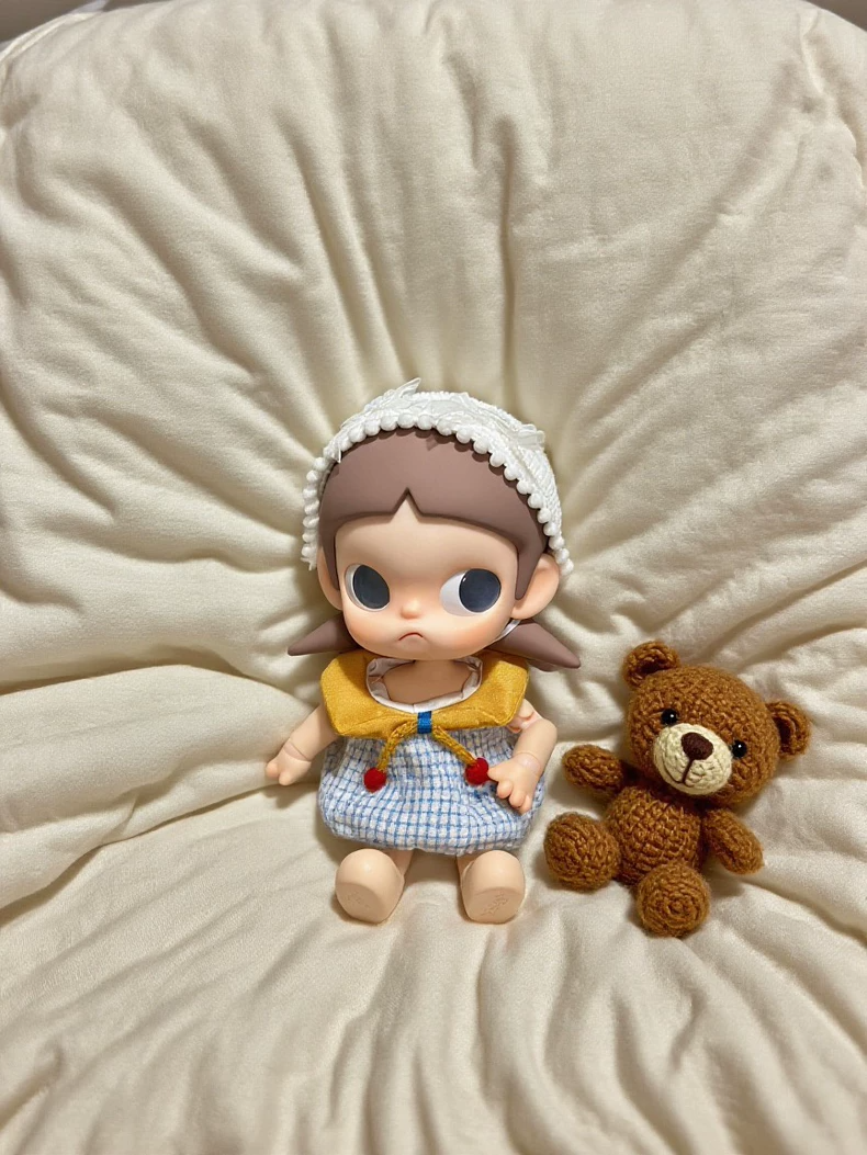 Vintage Zsiga BJD Doll Outfit: Blue Checkered Skirt with Bee Motifs & Yellow Bow
