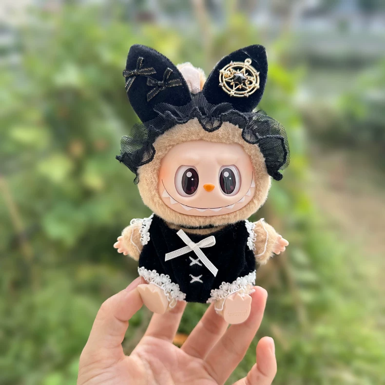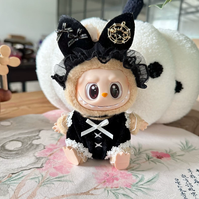 Whimsical LABUBU Doll Outfit - Luxe Black & Gold Enchanted Ensemble with Detachable Accessories