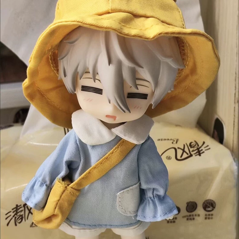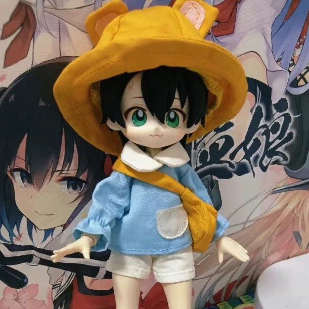 Whimsical OB11 Doll Outfit: Yellow Hat, Pink/Blue Blouse & White Shorts for 12-Inch BJD Dolls