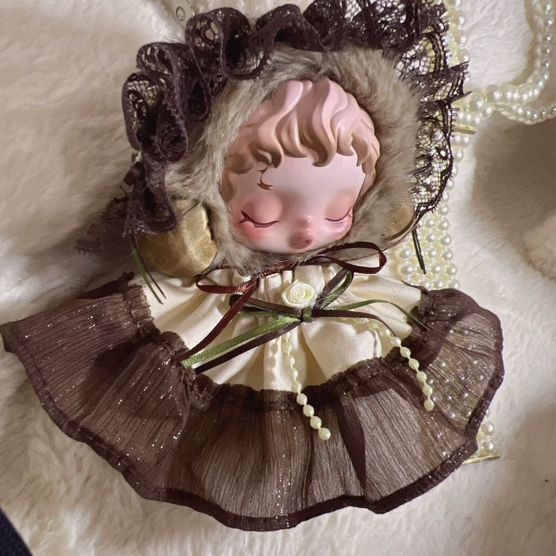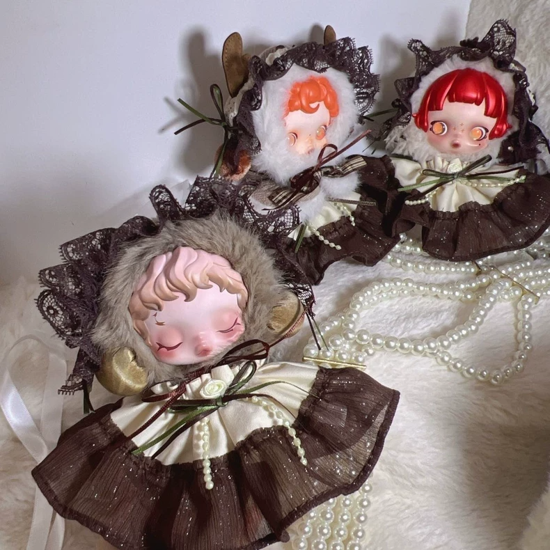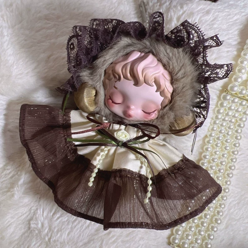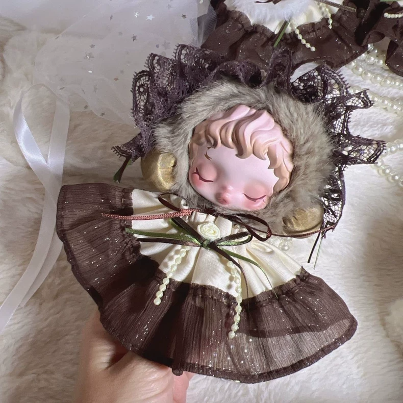 Whimsical Skullpanda Doll Outfit: Elegant Lace & Flared Skirt with Glitter Accents – Perfect for Collectors & Displays