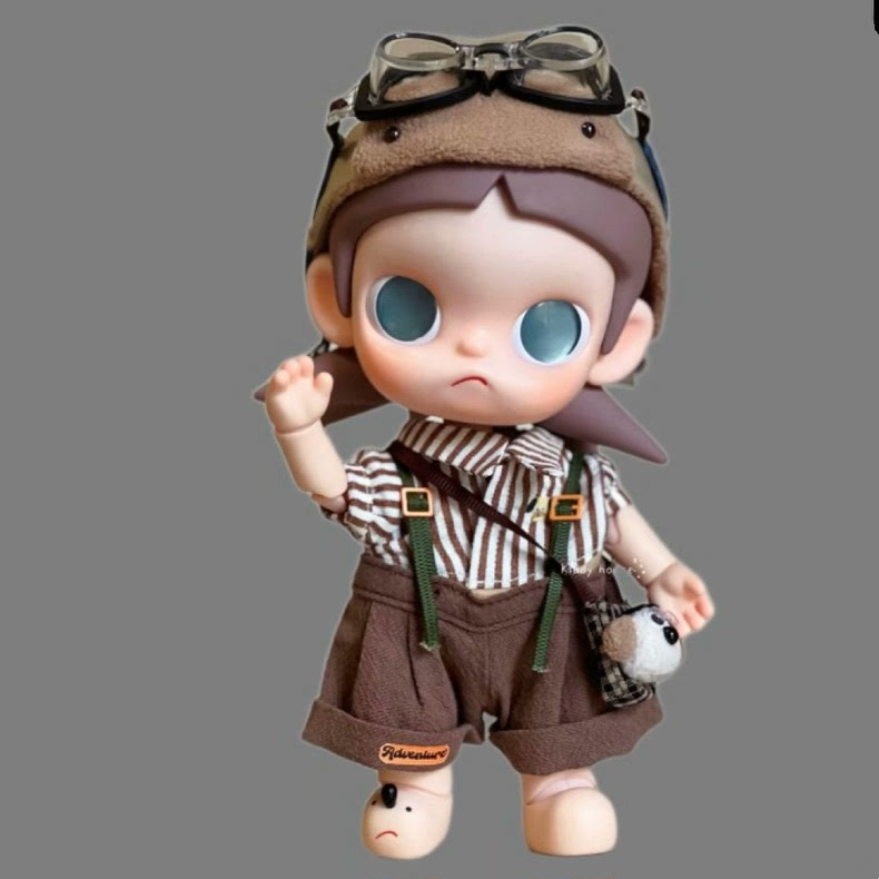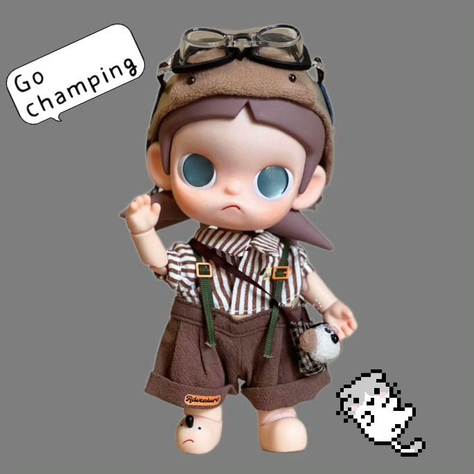 Zsiga BJD 1/8 Doll Adventure-Ready Camping Outfit Set: Hat, Striped Shirt, Suspenders, Bag & Glasses