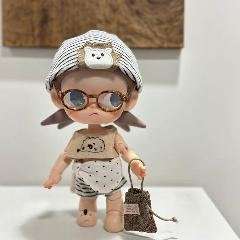 Zsiga BJD 1/8 Doll Outfit - Bear Hat, Hedgehog Vest & Polka Dot Apron - Premium Cotton Ensemble for 1/8 Scale Dolls