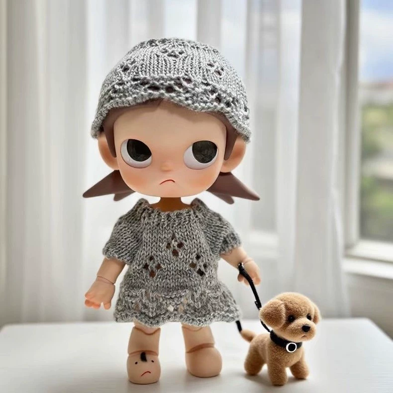 Zsiga BJD 1/8 Doll Outfit - Elegant Gray Knit Dress & Hat with Lace Details for Collectors