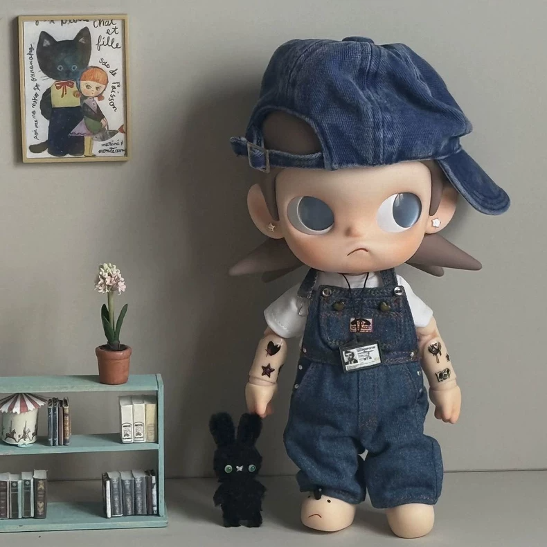 Zsiga BJD 1/8 Doll Outfit - Stylish Denim Overalls, Cap & Glasses Set for Collectors - High-Quality Fashion Ensemble