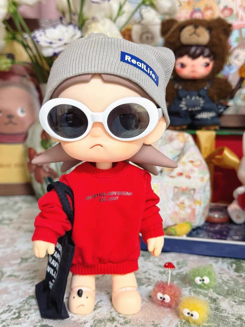 Zsiga BJD 1/8 Outfit: Stylish Red Sweater, Gray Beanie, Black Bag & White Sunglasses – Premium Quality & Modern Design