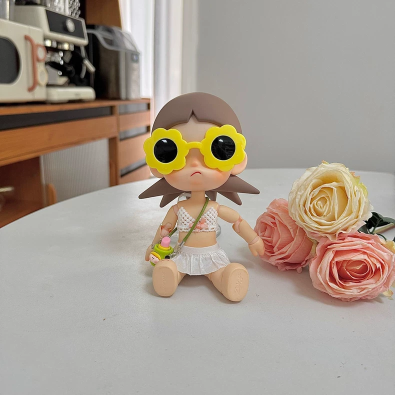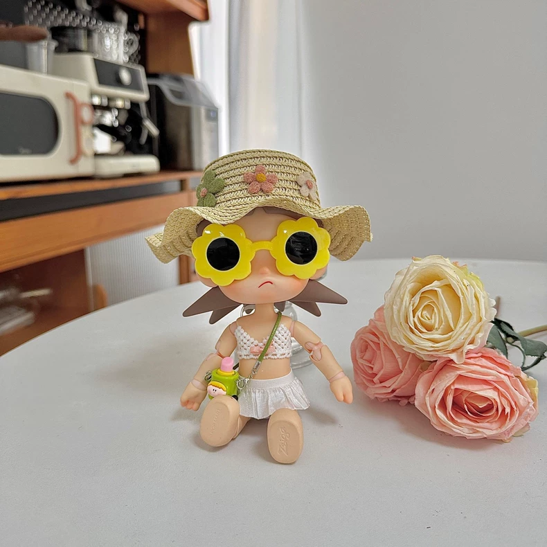 Zsiga BJD 1/8 Summer Outfit: White Lace Bikini, Floral Straw Hat & Yellow Sunglasses for Dolls